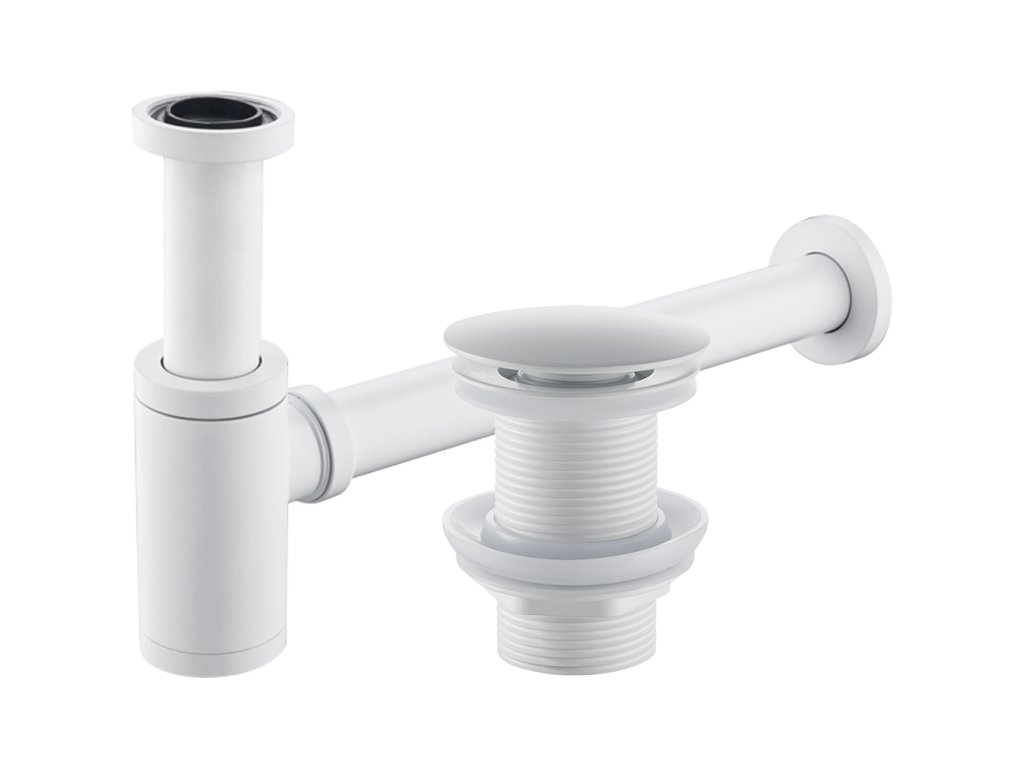 CERANO - Syfon umywalkowy - 5/4" - mosiądz - DN32 mm - z odpływem klik-klak, bez przelewu - matowy biały