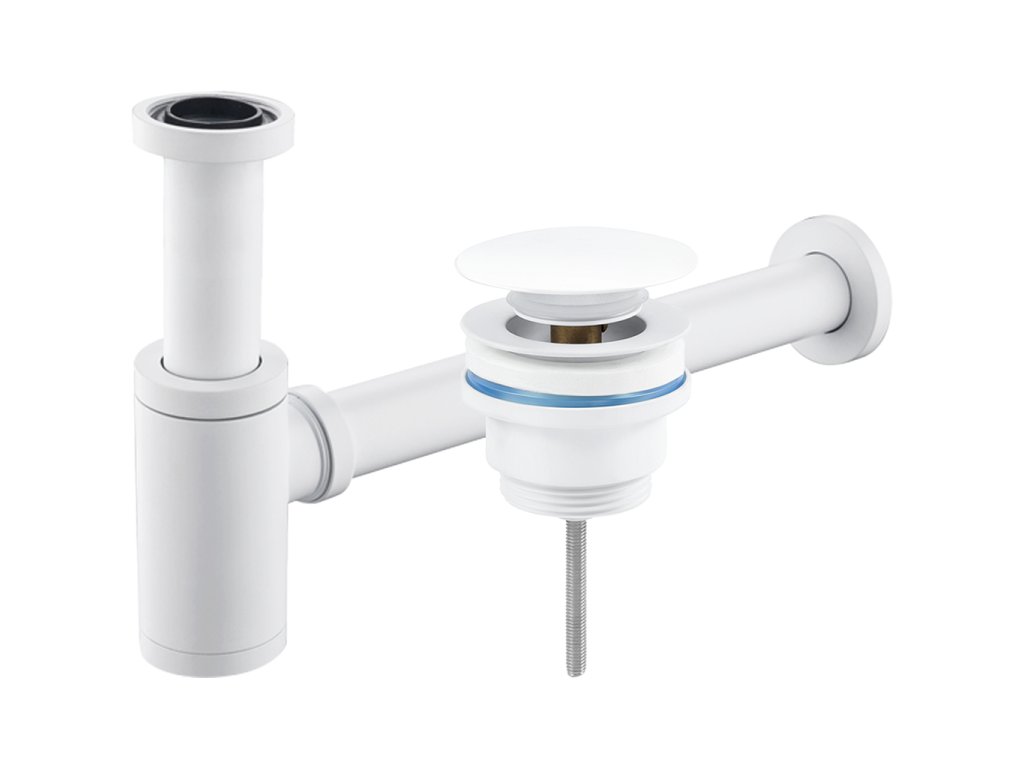 CERANO - Syfon umywalkowy - 5/4" - mosiądz - DN32 mm - z odpływem klik-klak - bez przelewu - biały