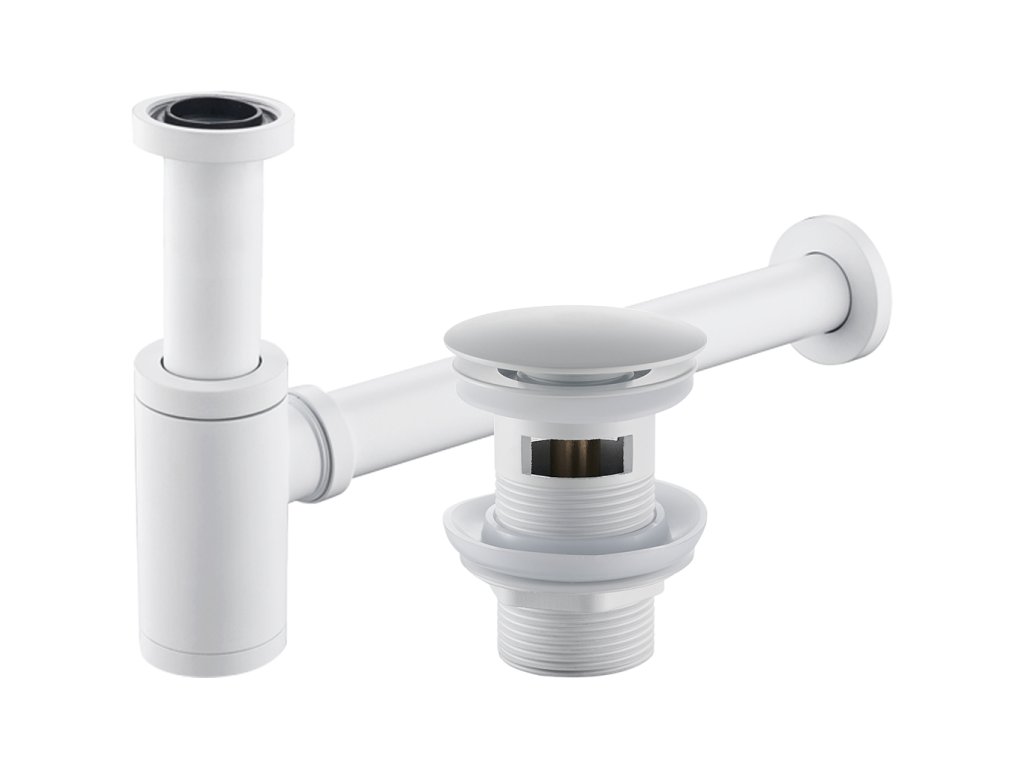 CERANO - Syfon umywalkowy - 5/4" - mosiądz - DN32 mm z odpływem klik-klak z przelewem - biały