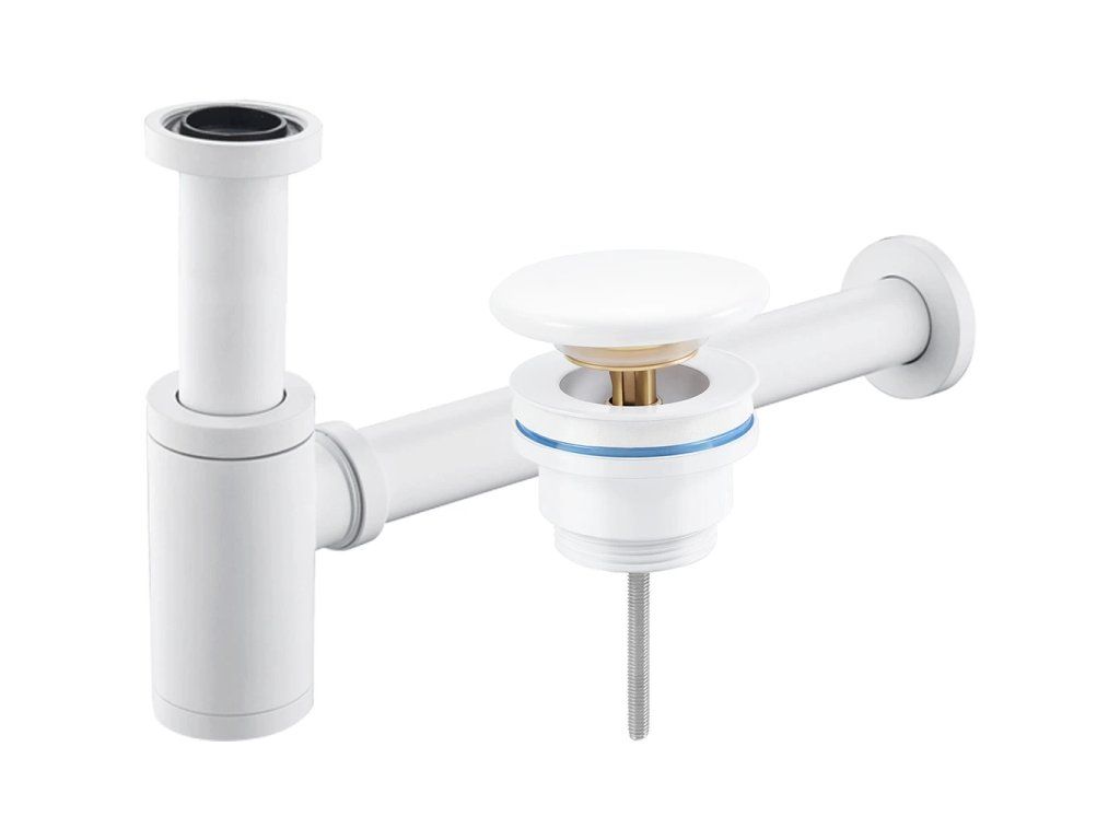 CERANO - Syfon umywalkowy - mosiądz - DN32 mm - z odpływem klik-klak - bez przelewu - korek ceramiczny - połysk biały