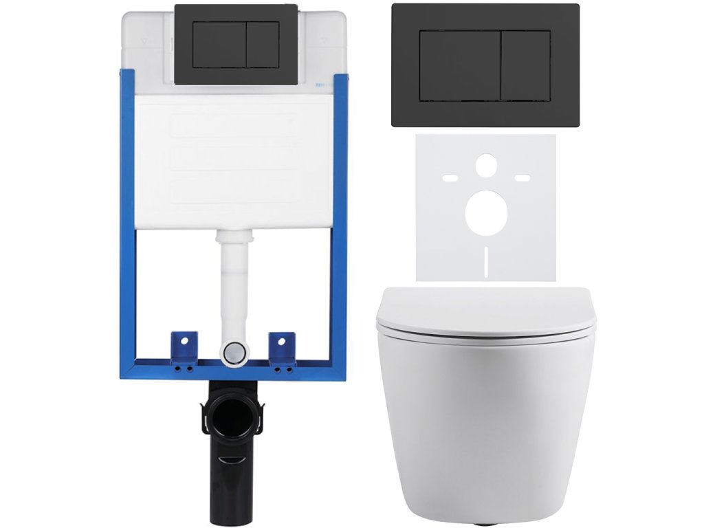 CERANO - Kompletny zestaw WC podtynkowy Lite/Cesso - biały mat - Przycisk WC Classic, czarny mat - do montażu na ścianie - 49x36 cm