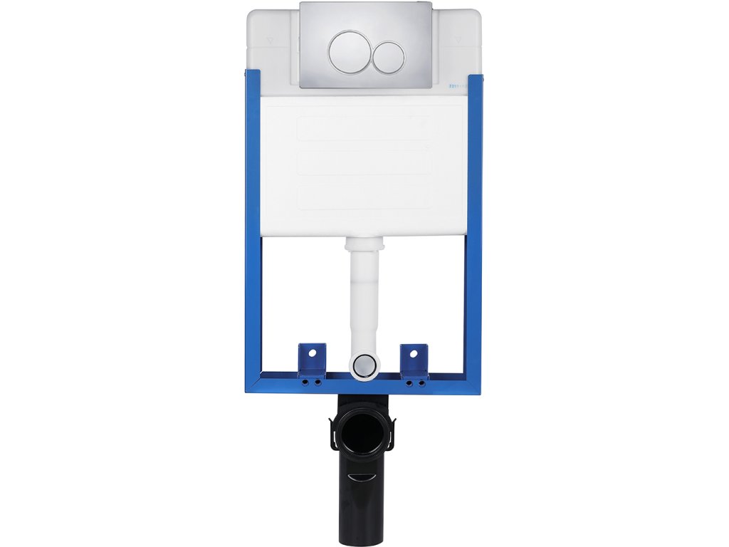 - Moduł toalety podwieszanej przeznaczony do montażu w ścianach z płyt gipsowo-kartonowych, zapewniający mocne i stabilne mocowanie, przy czym wszystkie elementy instalacyjne są ukryte i zabezpieczone.