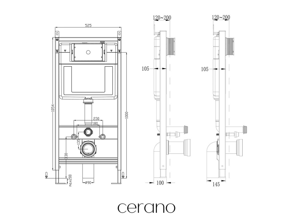 Podwieszane toalety Cerano są łatwe w montażu i, dzięki standardowym rozstawom montażowym, kompatybilne z modułami Cerano, a także innymi markami, takimi jak Geberit, Grohe, Alcadrain, Jika, Tece itp.