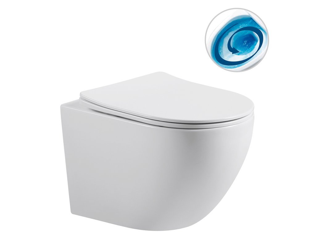 Technologia spłukiwania bezrantowego to rewolucyjny system, który dzięki braku pierścienia spłukującego zapewnia higieniczną czystość, ponieważ brud i bakterie nie gromadzą się w trudno dostępnych miejscach.