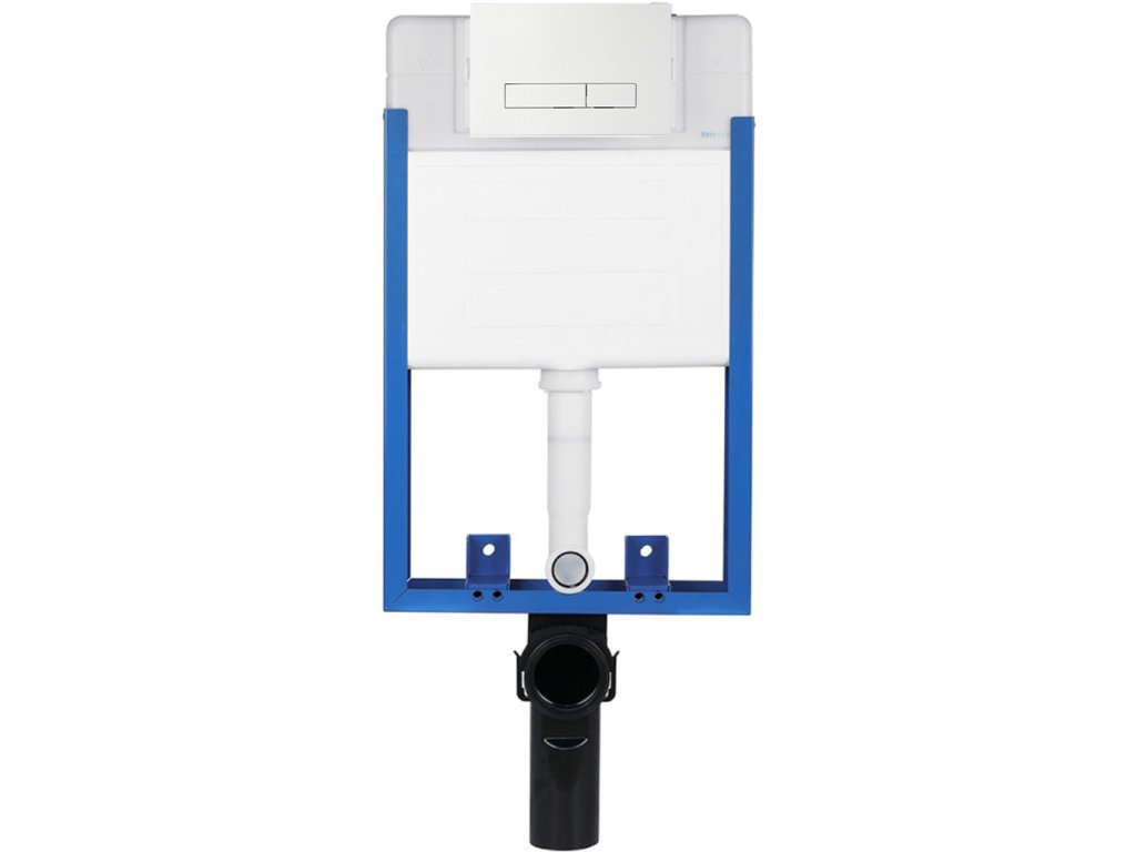 - Spłuczka zabudowana z fabrycznie zamontowanym zaworem odcinającym i napełniającym.