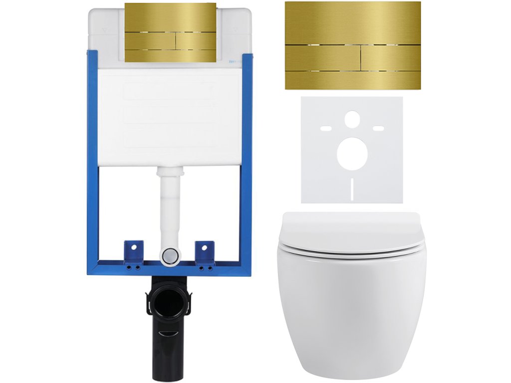 CERANO - Kompletny zestaw WC podtynkowy Lite/Dure - połysk biały - Przycisk WC Line, złoty - do montażu na ścianie - 51,5 x 35 cm