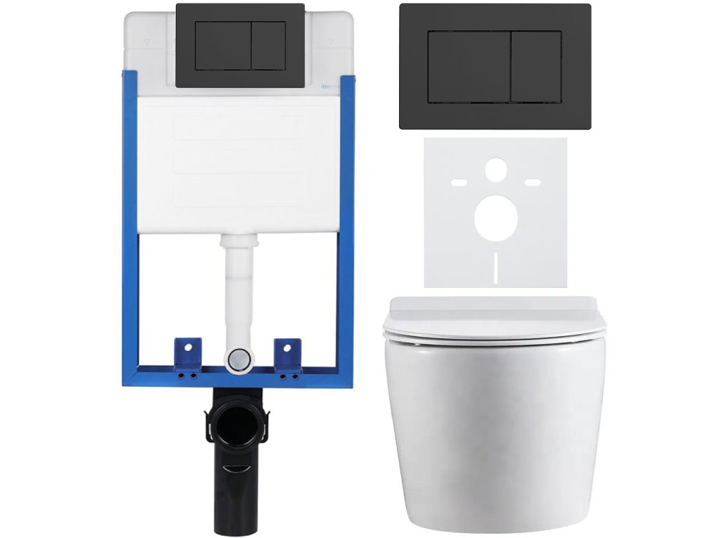 CERANO - Kompletny zestaw WC podtynkowy Lite/Felci - połysk biały - Klasyczny przycisk WC, matowa czerń - do montażu ściennego - 52,5 x 36 cm