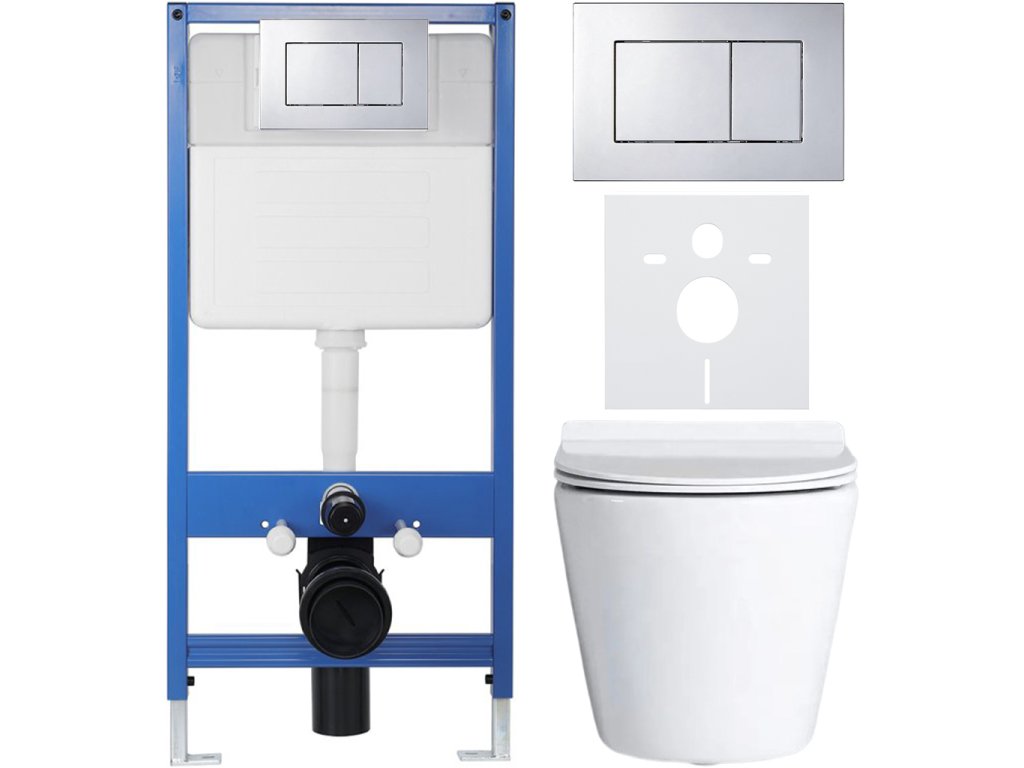CERANO - Kompletny zestaw WC podtynkowy Lite/Norbi - połysk biały - Klasyczny przycisk WC, chrom - do montażu ściennego - 48,5 x 36,5 cm