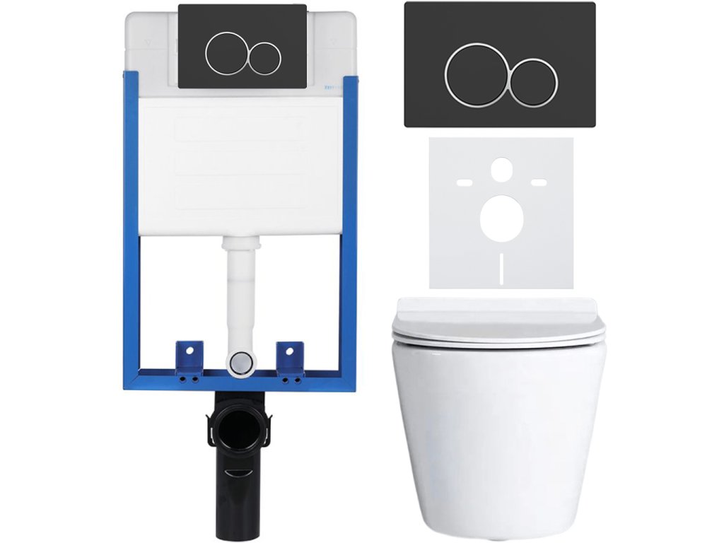 CERANO - Kompletny zestaw WC podtynkowy Lite/Norbi - połysk biały - Przycisk WC Duo, matowy czarny - do montażu na ścianie - 48,5 x 36,5 cm