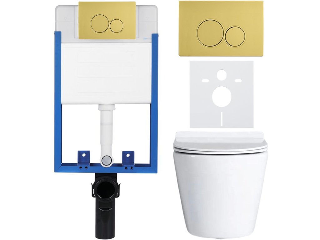 CERANO - Kompletny zestaw WC podtynkowy Lite/Norbi - połysk biały - Przycisk WC Duo, złoty - do montażu ściennego - 48,5 x 36,5 cm