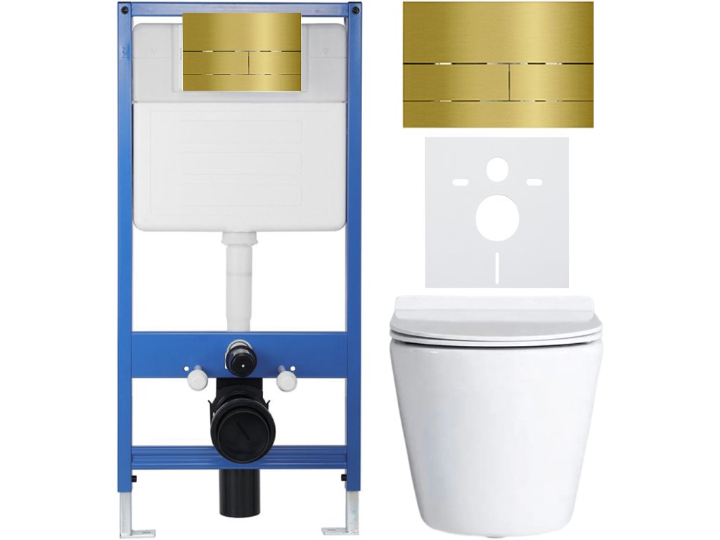 CERANO - Kompletny zestaw WC podtynkowy Lite/Norbi - połysk biały - Przycisk WC Line, złoty - montaż podtynkowy - 48,5 x 36,5 cm