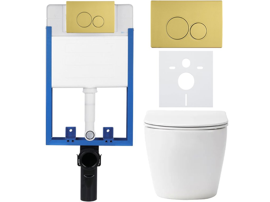 CERANO - Kompletny zestaw WC podtynkowy Lite/Verde - biały mat - Przycisk WC Duo, złoty - do montażu na ścianie - 49x36 cm