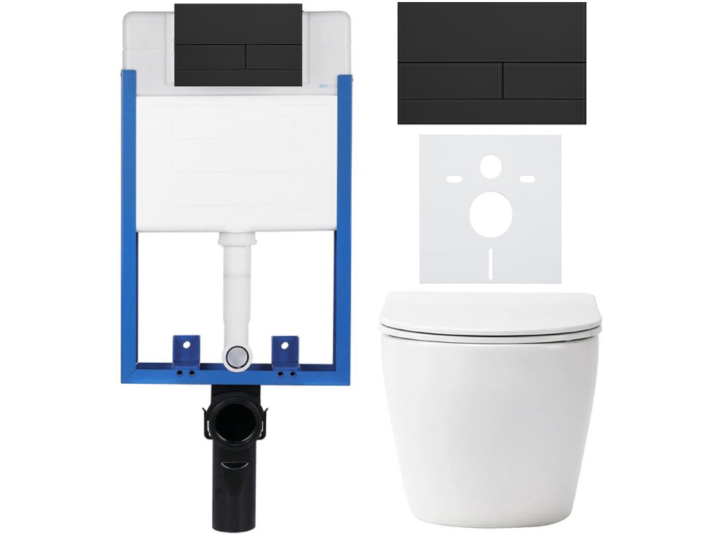 CERANO - Kompletny zestaw WC podtynkowy Lite/Verde - biały mat - Przycisk WC Line, czarny mat - do montażu na ścianie - 49x36 cm