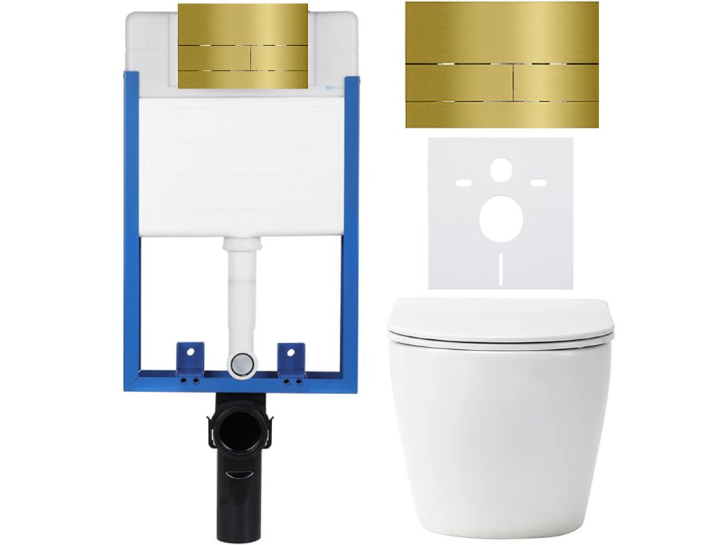 CERANO - Kompletny zestaw WC podtynkowy Lite/Verde - biały mat - Przycisk WC Line, złoty - do montażu na ścianie - 49x36 cm