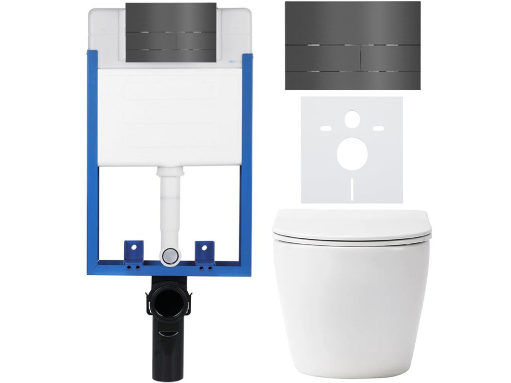 CERANO - Kompletny zestaw WC podtynkowy Lite/Verde - matowa biel - Przycisk WC Line, ciemnoszary - do montażu na ścianie - 49x36 cm