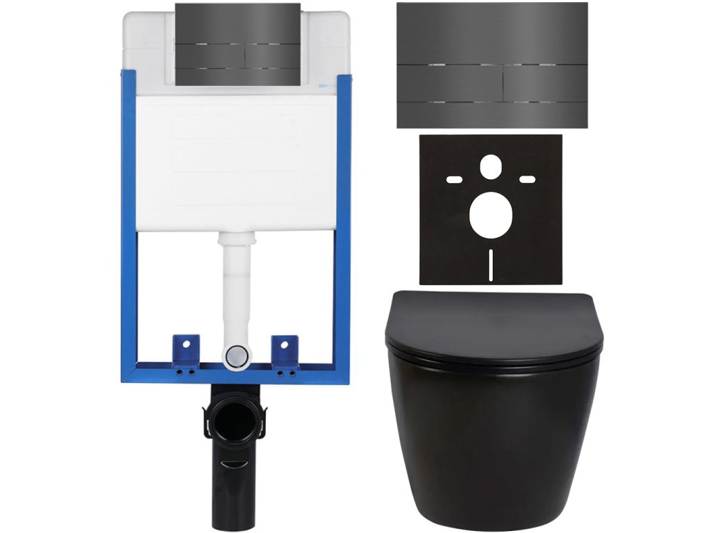 CERANO - Kompletny zestaw WC podtynkowy Lite/Verde - połysk czarny - Przycisk WC Line, ciemnoszary - do montażu na ścianie - 49x36 cm